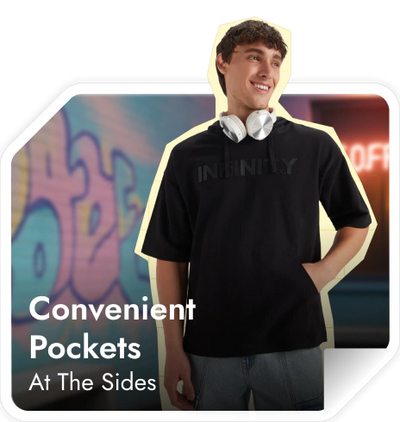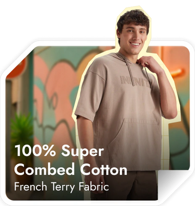100% Super Combed Cotton French Terry Fabric | Fabric Composition: 100% Cotton | Heavy Gauge | Hooded Neck | Oversized Fit | Half Sleeve | Convenient Side Pockets