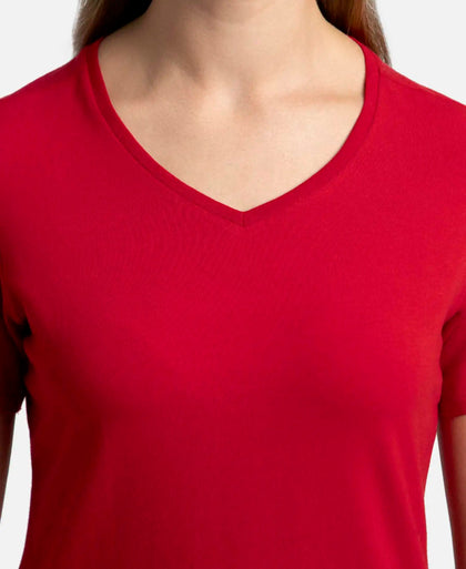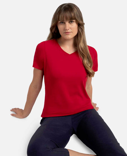 Micro Modal Cotton Relaxed Fit Solid V Neck Half Sleeve T-...